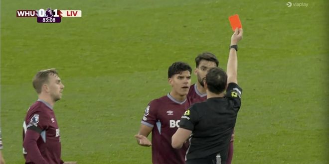 在11月30日英超第13轮西汉姆联主场0比2不敌利物浦的比赛中,巴西中场卢卡斯·帕奎塔因连续两张黄牌被罚下场,赛后引发广泛争议。